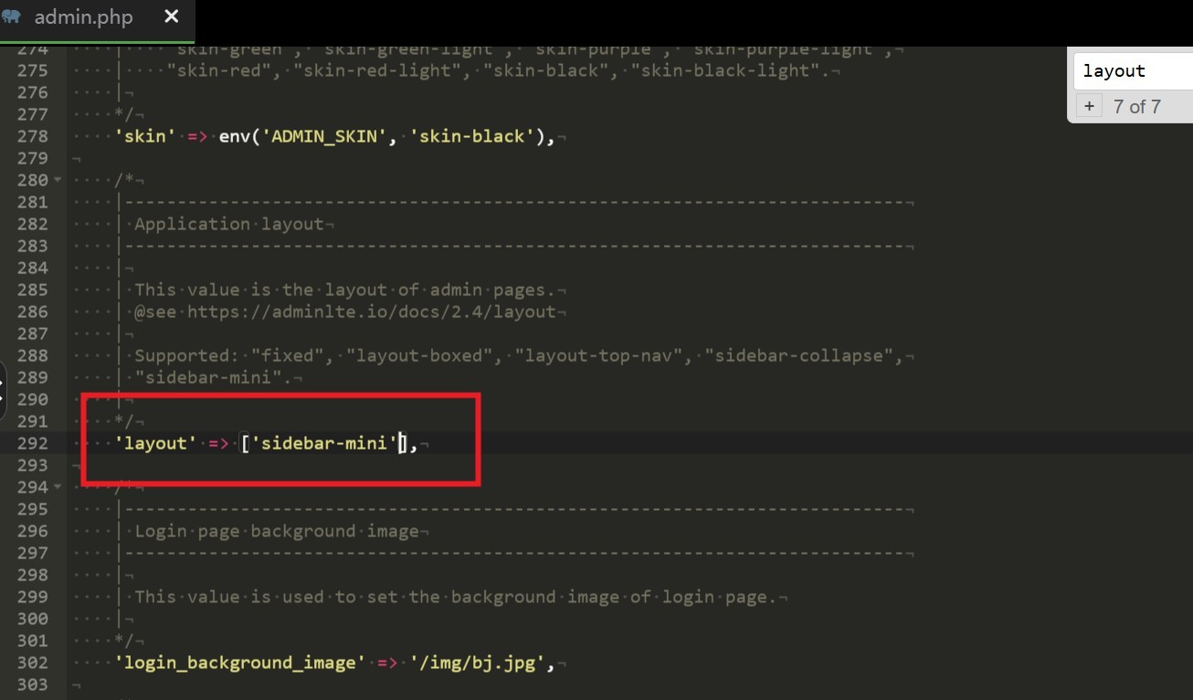 打开config/admin.php,修改layout,